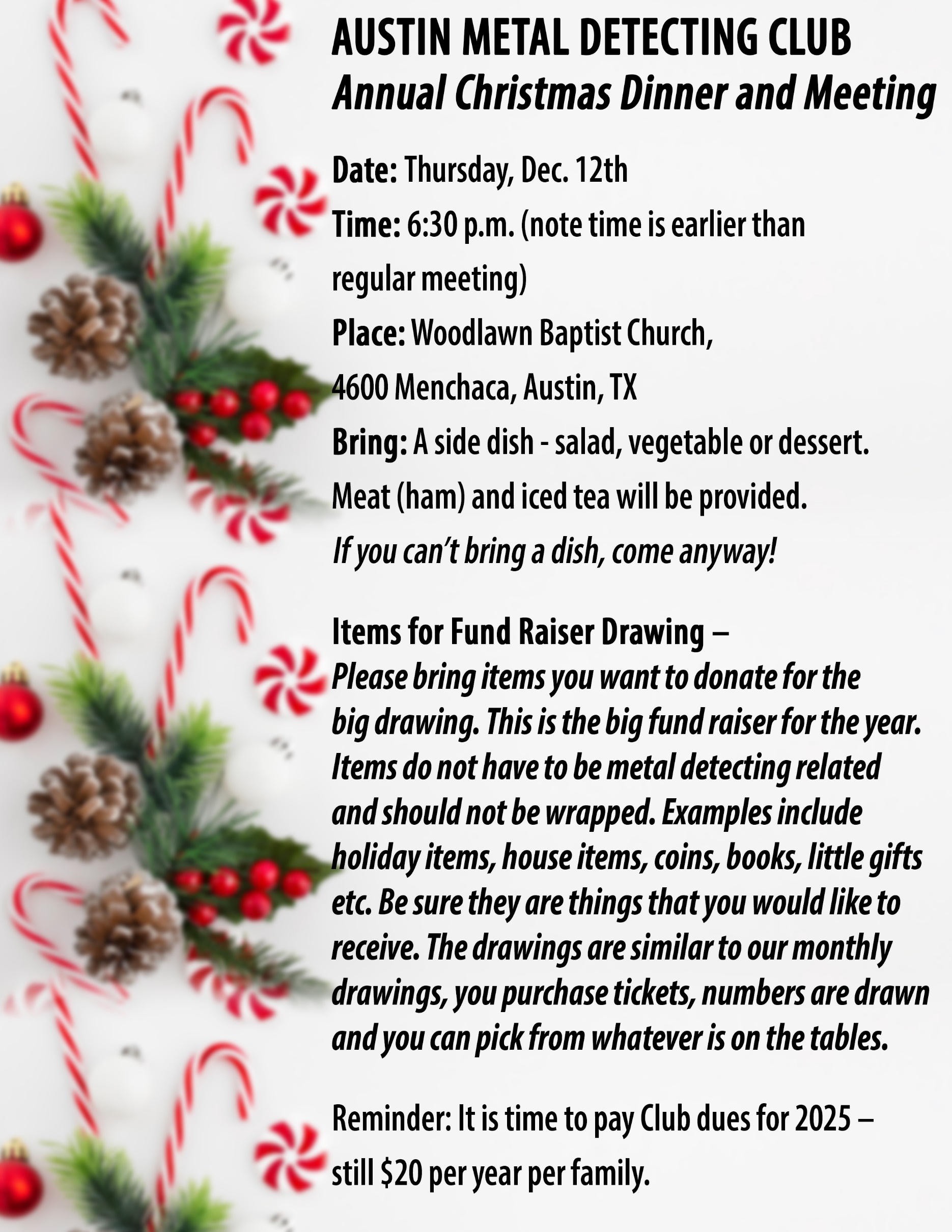 The AMDC newsletter is usually published by the Monday after the first Thursday of each month. If you have any interesting detecting stories or photos of detecting activities, please email them to the Newsletter Editor at newsletter@amdconline.com.
